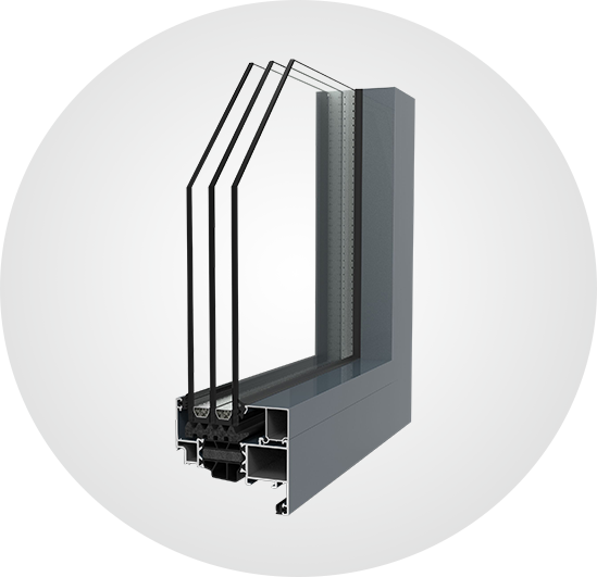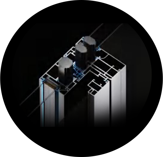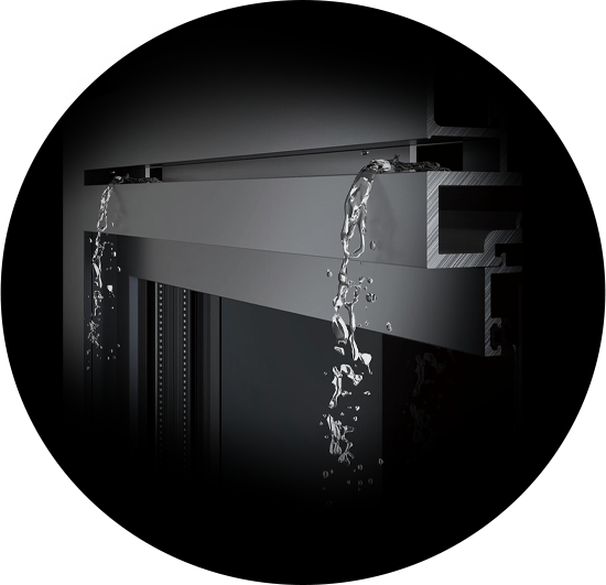 系统门窗整窗铝材腔体进行高密度【隔音·保温】发泡填充,整窗工艺进行专业防水设计,汽车级复合胶条、挤压式密封。