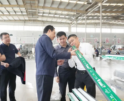 5月14日,中国建筑金属结构协会副会长兼秘书长咸大庆、中国建筑金属结构协会塑料门窗及建筑装饰制品分会会长易序彪、工程师赵新平等一行领导莅临中德集团指导参观,中德集团董事长程田青、执行总裁张军、技术总监马瑞峰等相关领导热情接待,全程陪同听取指导意见。