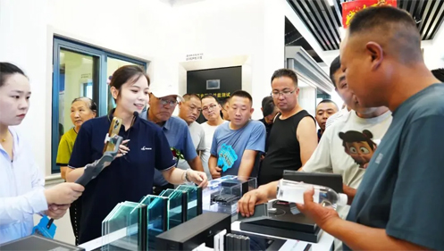 庆典过后,大家期待已久的展厅参观环节如约而至。在这里,你可以亲手触摸 “会说话的好窗”:从隔音隔热测试区的系统门窗,到燃气泄漏报警安全窗,再到适配各种家居风格的定制门窗方案,每一款产品都藏着中德家对美好生活的诠释。