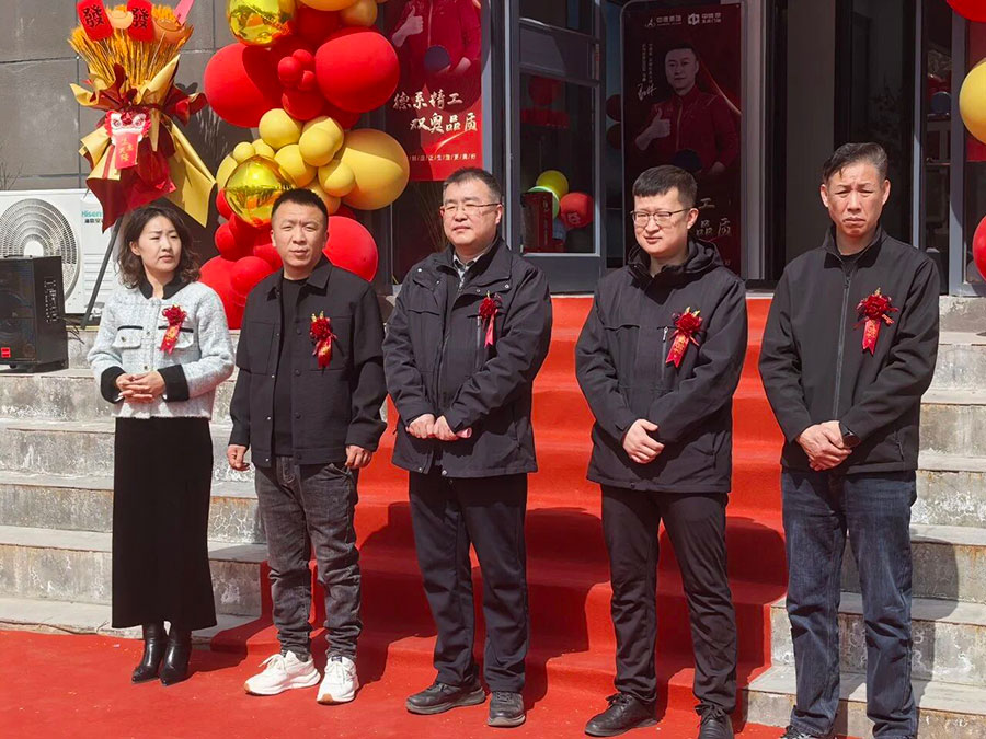 开业庆典现场,山西中德家系统科技有限公司总经理王庆丰(右二),中德集团技术总监、山西中德家系统科技有限公司常务副总经理马瑞峰(右三),中德家系统门窗晋城店总经理马伟峰(左二),晋城市弘缘工贸有限公司总经理邓丽霞(左一),长晋运营中心型铝晋城办事处经理冯永红(右一)莅临现场,为晋城店开业送上美好期许。庆典上,马瑞峰先生发表致辞,深入解读了中德家“德系精工,双奥品质”的品牌初心,中德集团以严谨技术工艺坚守产品质量、以创新思维推动“中德智造”的发展布局,让现场嘉宾深刻感受到中德家品牌背后的技术实力与品质坚守。